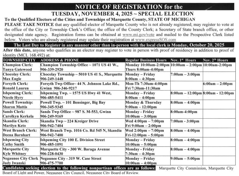How do I check to see whether I’m already on the Permanent Mail Ballot List? Voters were not able to sign up for the list until May 2023. If you think you signed up for the list in May 2023 or after, please contact the Powell Township Clerk’s Office. You can also visit www.michigan.gov/vote to check your status and sign up to be on the list.